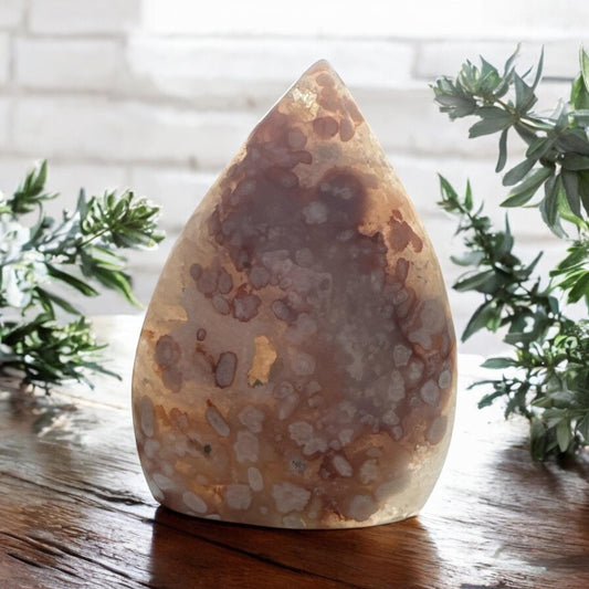 Polished Pink Amethyst & Flower Agate Flame Crystal: Emotional Healing Stone