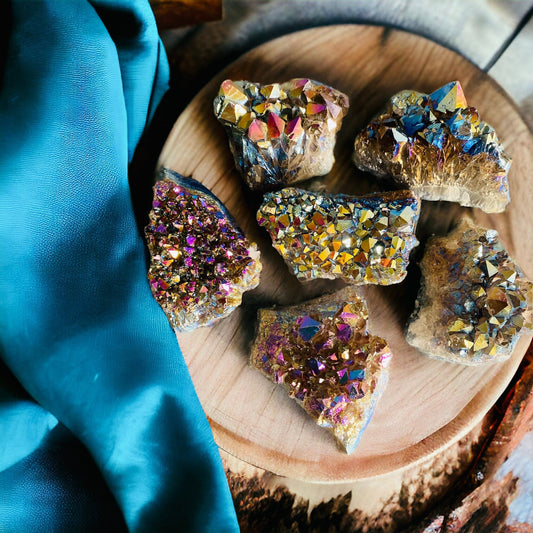 Rainbow Aura Amethyst Cluster: Calming Meditation Crystal
