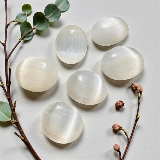Selenite Palmstone: Natural Crystal for Cleansing & Meditation (70-80mm)