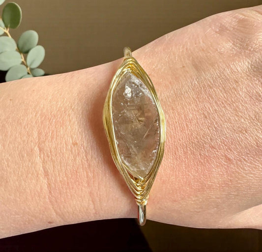 Smokey Quartz Cuff Bangle: Raw Crystal Bracelet. Gold Plated