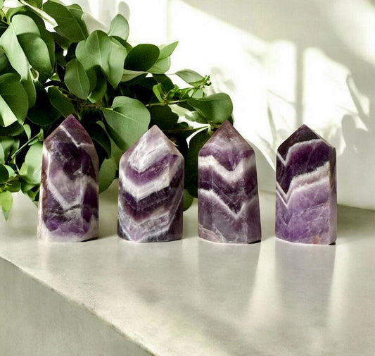 Chevron Amethyst Crystal Tower: Spiritual Decor (60-70mm)
