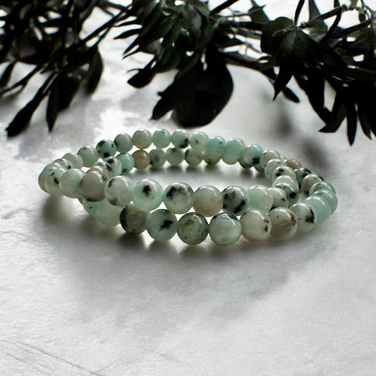 Handmade Kiwi Jasper Beaded Bracelet: Soothing Crystal Jewelry