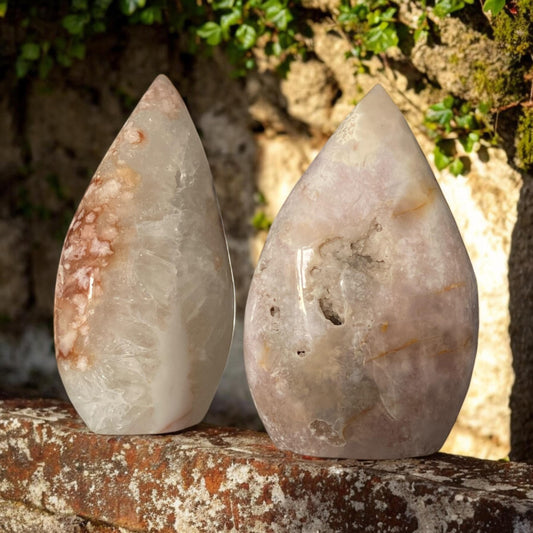 Pink Amethyst & Flower Agate Crystal Flame: Emotional Healing Stone