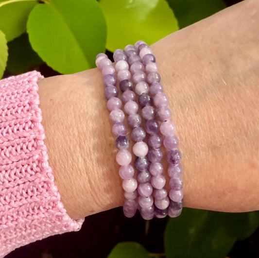 Lepidolite Crystal Bracelet: 3mm Polished Beads, Calm & Balance